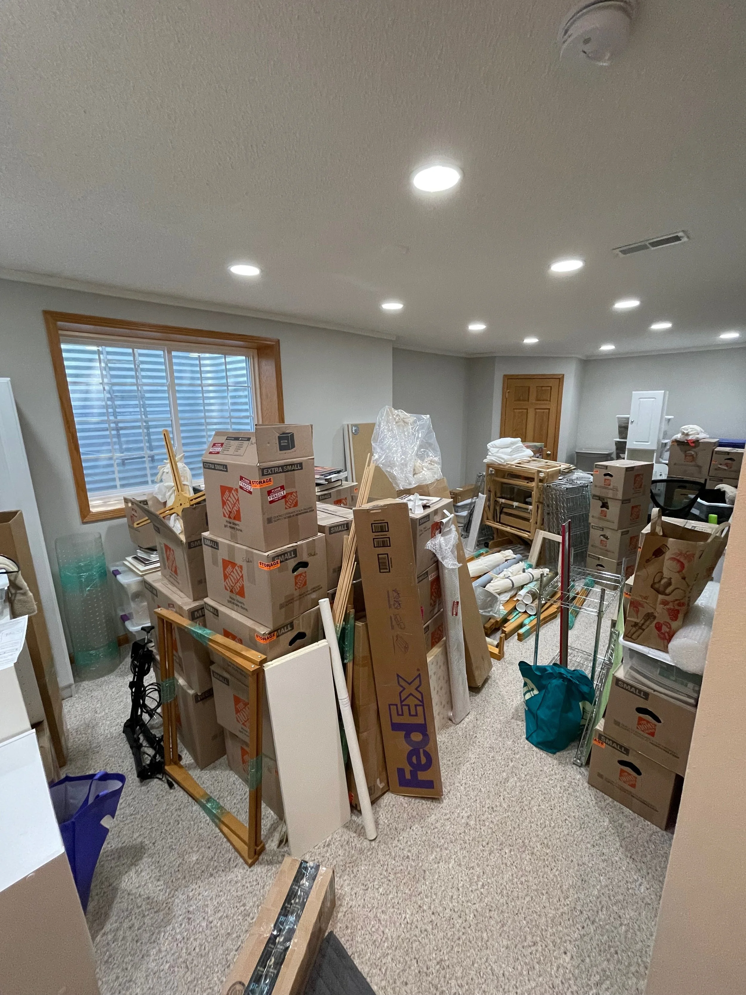 We closed on our new home in July and have mostly unpacked. My studio is coming along nicely. The looms have been set up and I’m well on the way to having work planned for both. I have a few more storage set up tweaks to do. The space always feels enormous when it is empty, and then the stuff arrives. My new space is a bit smaller than before, but I love having one space for studio and office. I’m glad that I let go of some equipment and supplies before our move. The studio has a lot of storage that has been strategically managed.