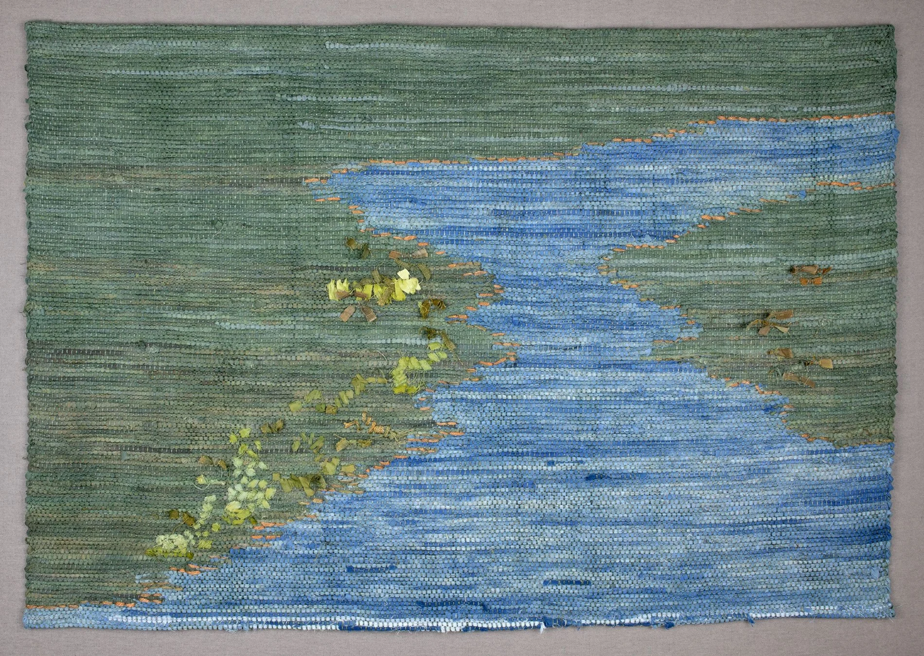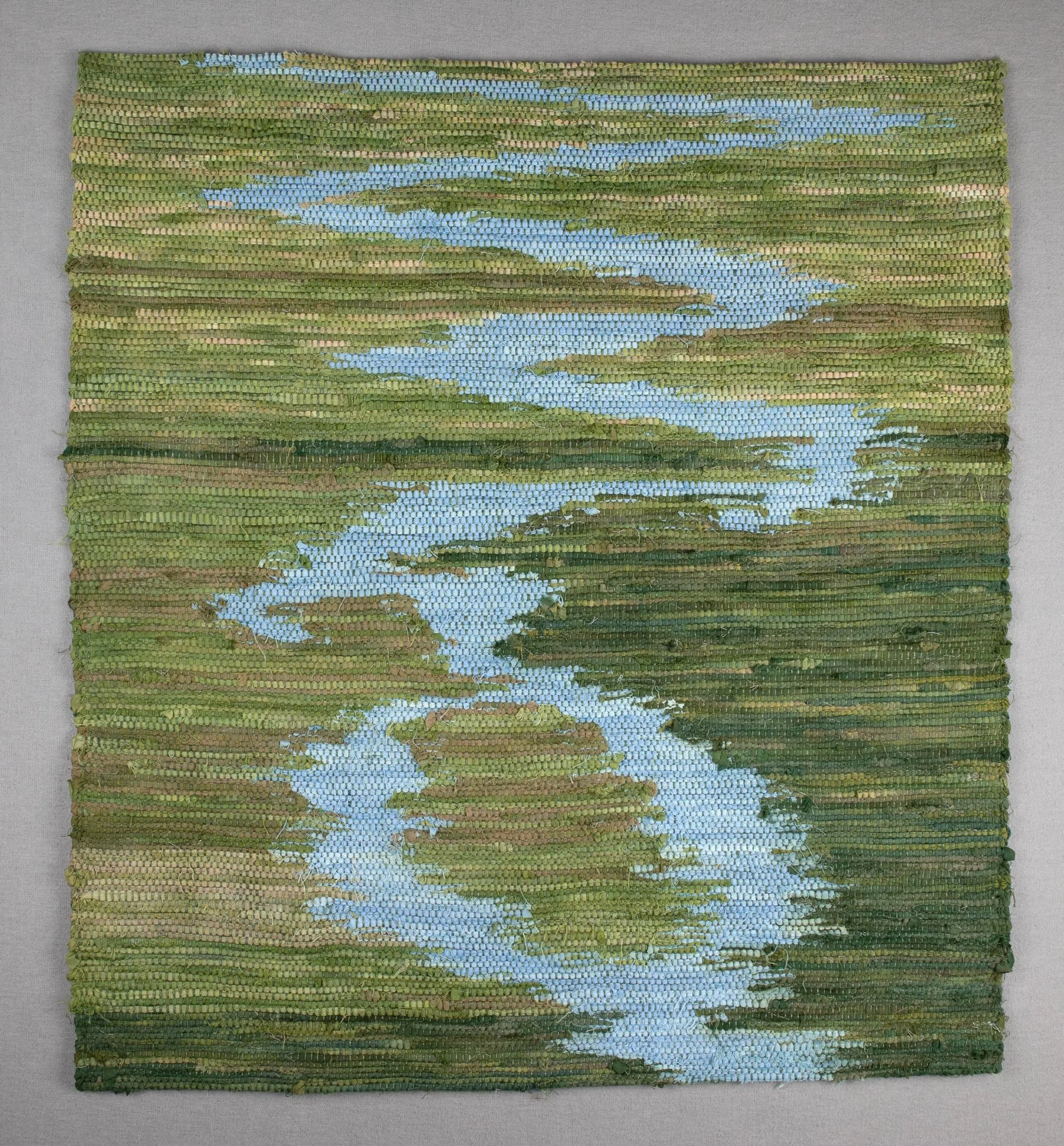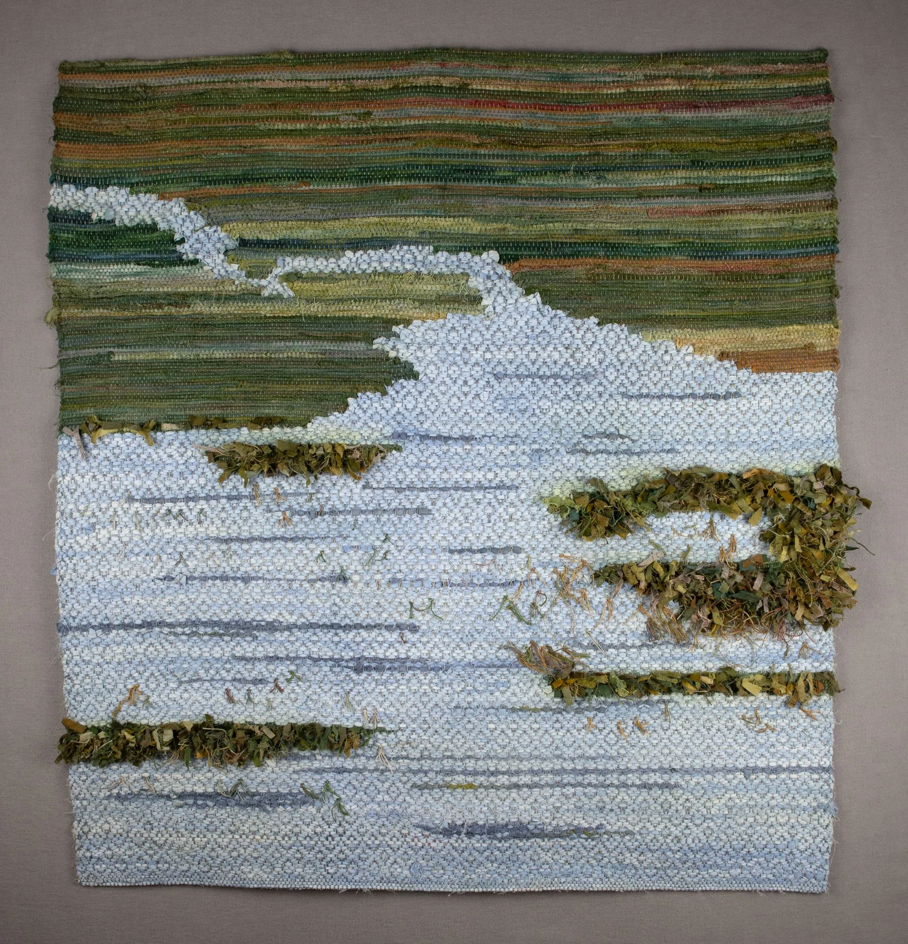 This piece will always remind me of late August. It began at the state fair and was finished in my garage, accompanied by the summer cicadas’ song. In many ways, works made on the loom become time capsules for me. I often remember what I was thinking during particular sections of the work. This piece holds the conversations I had with fair visitors, as well as the chats with neighbors passing by my garage. I suppose seeing someone weave in their garage isn’t a common sight—I highly recommend it.