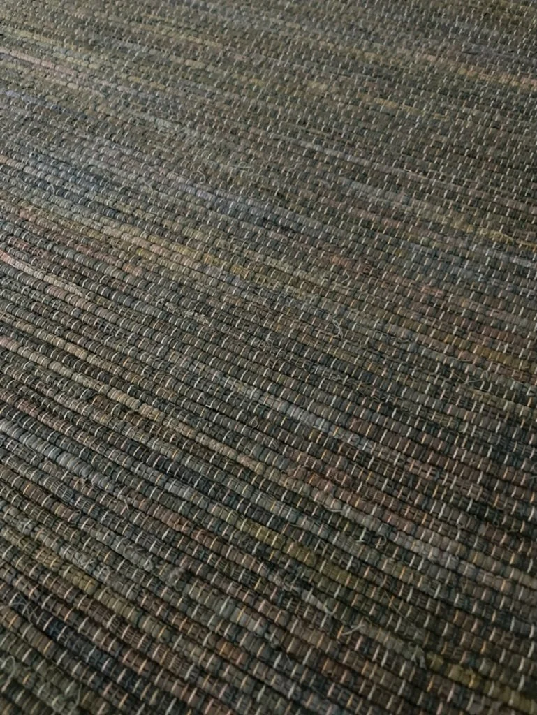 Rag rug made out of hand dyed fabric that was disappointing as a fabric, but transformed well into a rug.